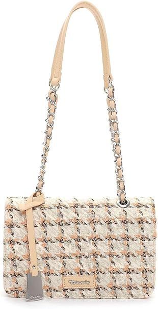 TAMARIS juhlalaukku hopean värisellä ketjuhihnalla. Kimallepinta.