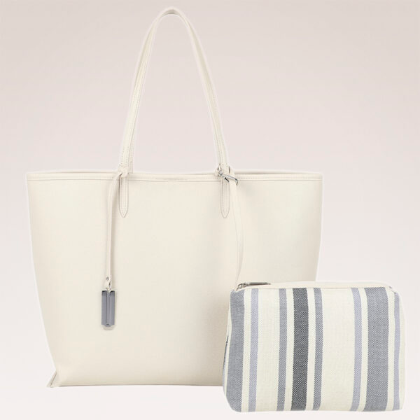 ULRIKA Tyylikäs ja tilava shopper-laukku. Materiaali nahkajäljitelmää. Käännettävä malli - Valitse raidallinen kuosi tai yksivärisyys. Mukana kätevä sisälaukku lisäsäilytystä ja parempaa järjestystä varten. Täydellinen sekä arkeen että viikonloppuun.