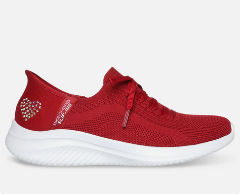 SKECHERS Slip ins tennarit. Upea punainen väri ja sydänkoristus. Koristenauhat. Helpot sujauttaa jalkaan.